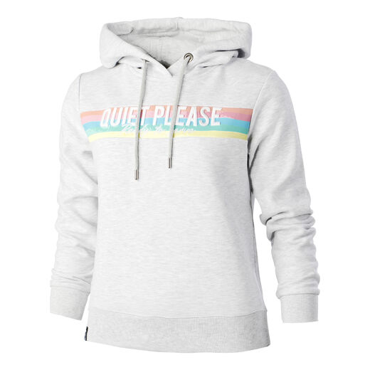 Mikina Rainbow Stripe Hoody od značky Quiet Please je určena pro ženy, které chtějí svou vášeň pro sport začlenit do svého ležérního stylu. Ležérní mikina má na rezavé straně cool nápis "Quiet Please", který díky jemným, pastelovým duhovým barvám okamžitě upoutá pozornost. Samozřejmě nemůže chybět ani motto "Ready to serve". Stejně jako klokaní kapsa, kapuce a pohodlné manžety a spodní lem. To vše jsou ty nejlepší argumenty pro to, abyste si mikinu Rainbow Stripe Hoody pořídili! A samozřejmě nezapomínáme ani na pohodlí. Udržitelně vyrobená mikina volně a pohodlně padne a skvěle se hodí k džínům, sukním nebo legínám.